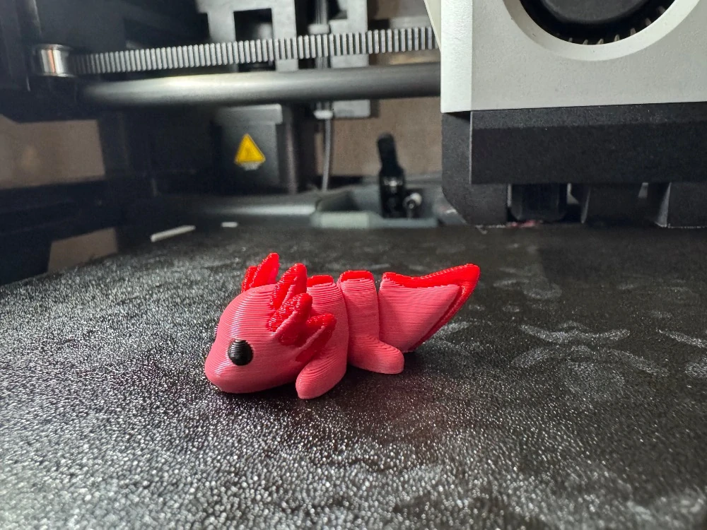 3D tištěná pohyblivá postavička axolotla z materiálu PLA.