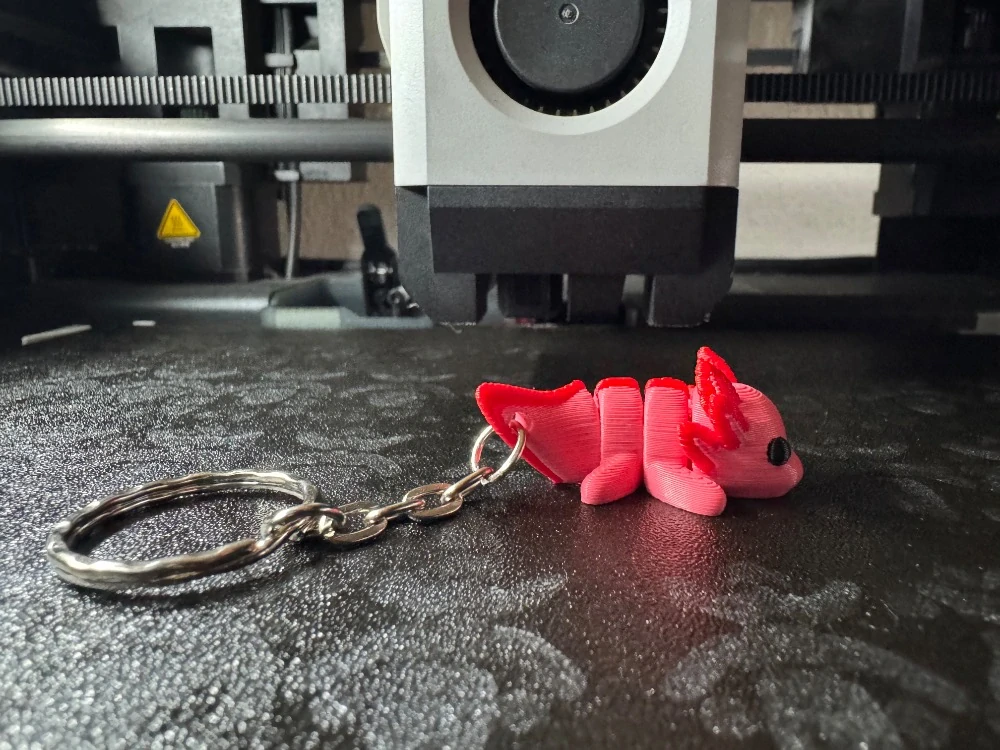 3D tištěná pohyblivá postavička axolotla z materiálu PLA.