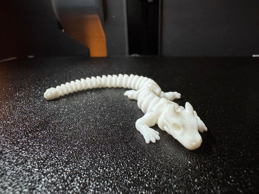 3D tištěná pohyblivá postavička kostěného draka z materiálu PLA.