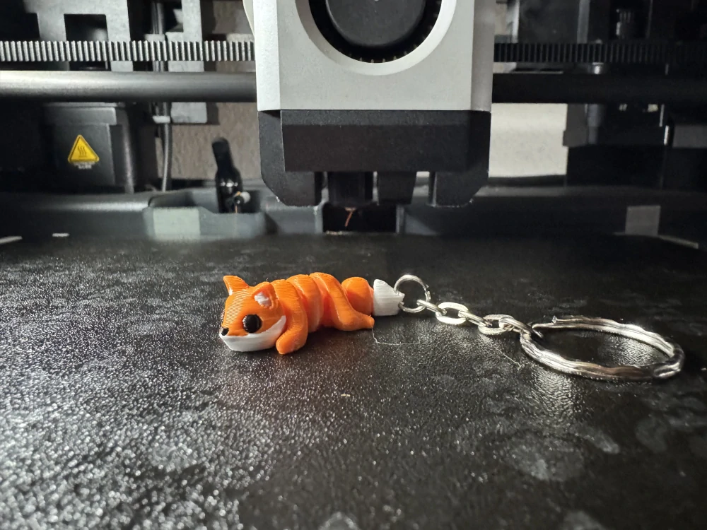 3D tištěná pohyblivá postavička lišky z materiálu PLA.