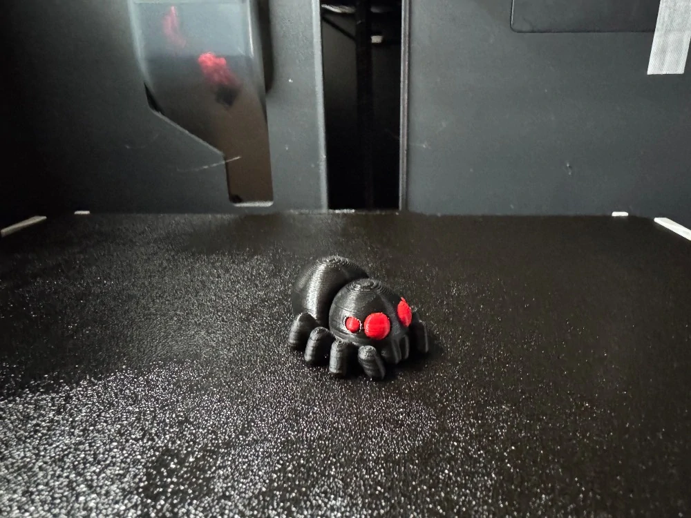 3D tištěná pohyblivá postavička pavouka z materiálu PLA.