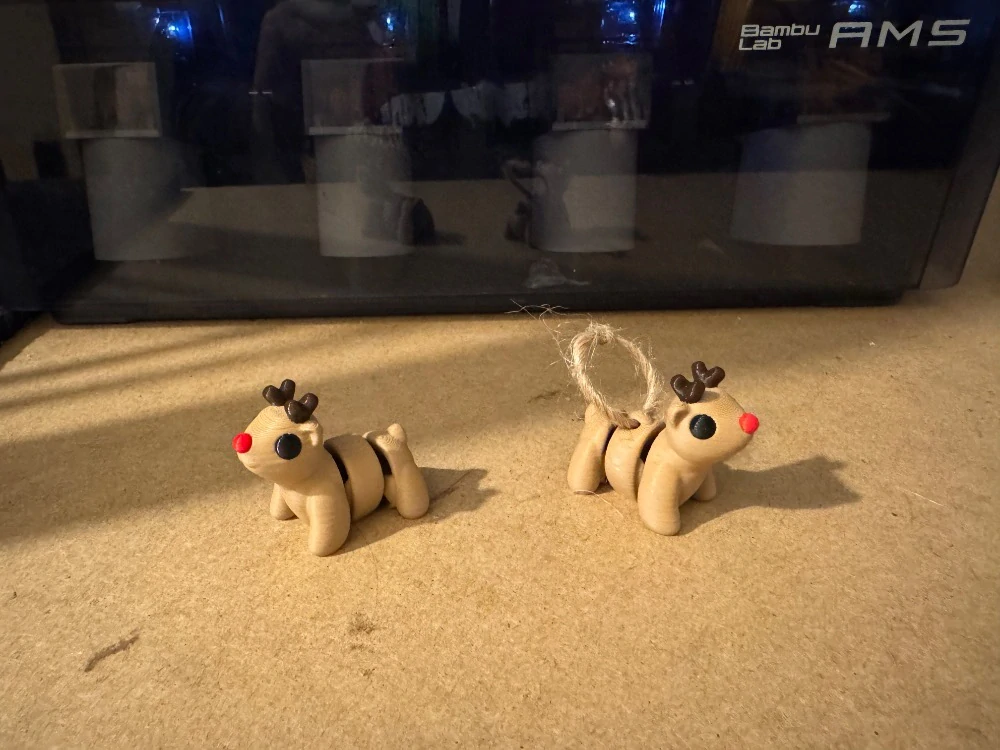 3D tištěná pohyblivá postavička sobíka z materiálu PLA.