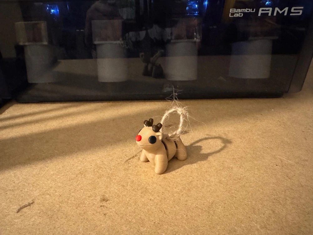 3D tištěná pohyblivá postavička sobíka z materiálu PLA.